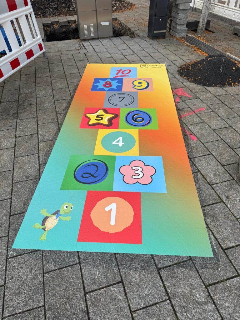 Individuelle Bodenfolien zur schnellen Gestaltung von Kinderhüpfspielen sowie Spielbereichen. Perfekt für Innenstädte, Kitas und Schulhöfe. Diese Folien sind leicht zu entfernen und hinterlassen keine Rückstände! Für weitere Informationen stehen wir Ihnen gerne zur Verfügung!